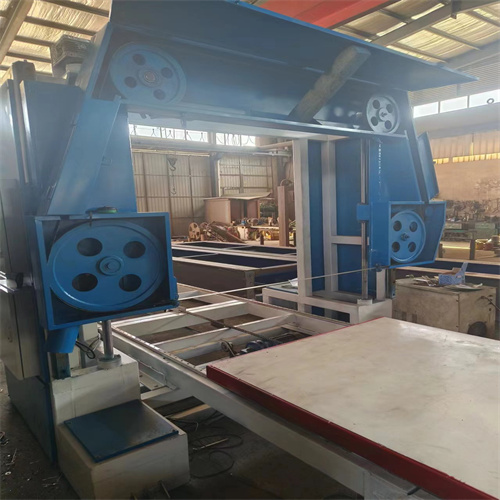 龙门式平切锯对高硬度聚氨酯坨子进行切割,切割效率为1分钟4米,单面锯切割的优点是:因为单面锯的硬度增加,使切割板材时,保证锯条不会上下抖动,(切割行进速度太快会加快锯条的磨损)实验后误差为1mm