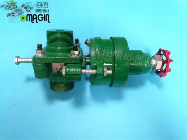 3)以上2步骤调整完后,试机工作,如果喷枪仍然不出砂或出砂量太大,则需调整砂阀右侧(即螺母后方)的手把开关,顺时针为减少砂量,逆时针为加大砂量.