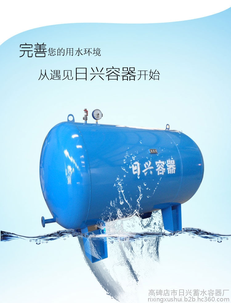 压力罐:无塔供水器采用动力设备汲取水到无塔供水容器内,利用空气压缩的原理,形成自然压力,从而实现水资源全封闭存储,增压,输送等全自动供水功能,具有全自动控制,可移动无污染,造价低,寿命长等优势,完全替代了成本高昂,大兴土木的高价水塔和敞开式房顶水塔,实现了供水自动化,智能化。