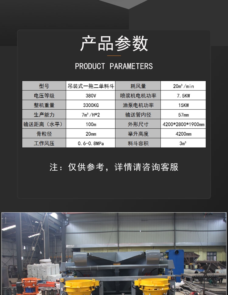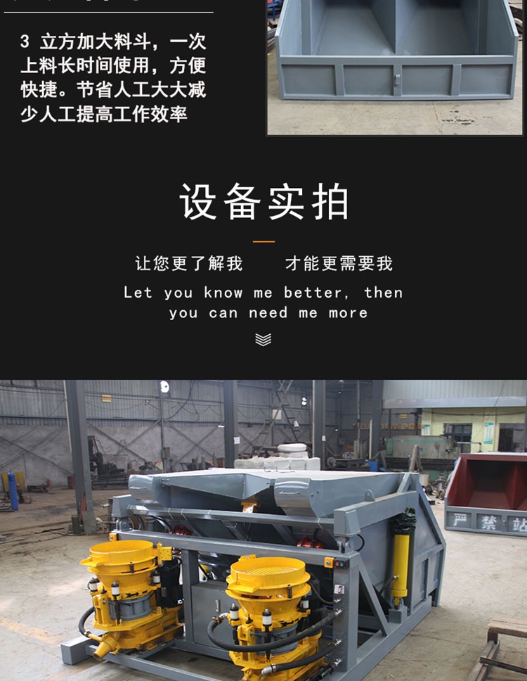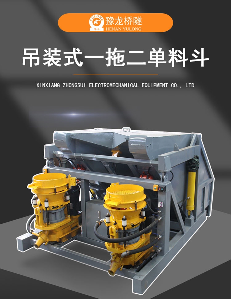 ,隧道干喷机,吊装式一拖二双料斗,液压上料机组,混凝土干式喷浆机组。YLDP-2吊装自动上料喷浆机操作视频