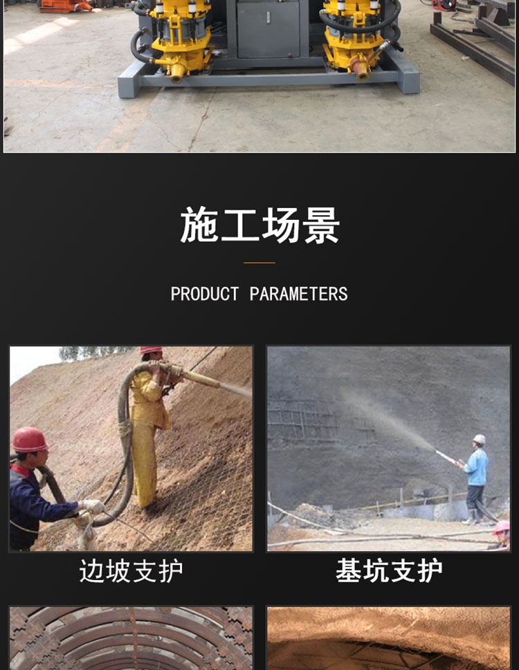 液压湿喷机产品特点 液压湿喷机结构简单,适应性强。泵送压力高,输送距离远。高效率:输送排量大,综合工效高。高性能:喷射混凝土性能高,密实、匀质、高强度。高可靠性:关键件采用国内知名品牌保证设备高可靠性。速凝剂添加与控制技术:采用知名气动计量泵,计量准确,雾化射流与喷嘴料流混合使得速凝剂与混凝土混合均匀。