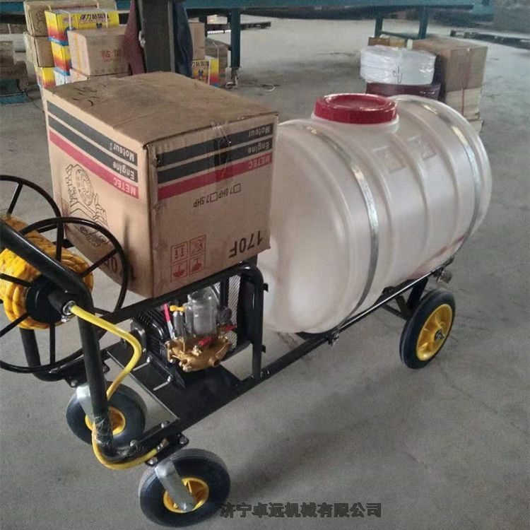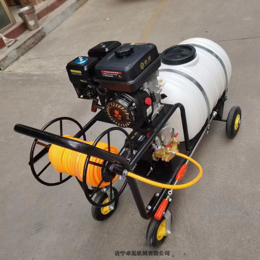 高压动力打药车特点:启动方便,结构紧凑,运输便利,射程远,雾化效果好,作业范围大,特有回液搅拌器,