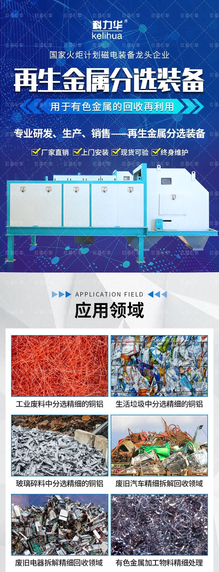 偏心涡电流金属分选机利用导体在高频交变磁场中产生感应电流的原理进行设计的。工作时,在分选磁辊表面产生高频交变的磁场,当有导电性的有色金属经过磁场时,会在有色金属内感应出涡电流,此涡电流本身会产生与原磁场方向相反的磁场,有色金属(如铜、铝等)则会因为磁场的排斥力作用而沿其运输方向向前飞跃,实现与其他非导体物或非金属类