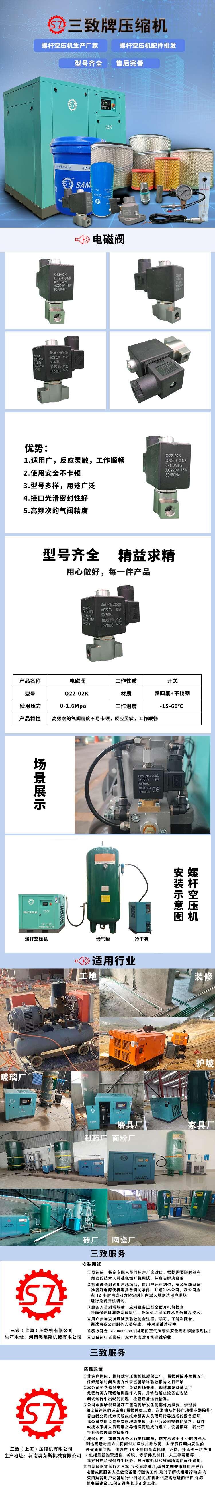 江西赣州市电磁阀三致压缩机空压机配件整机一年保修