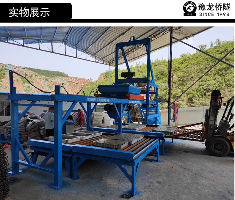豫龙混凝土预制构件生产线,是国内高性能混凝土预制构件设备,该设备有着独特的优势,安装简单,拆卸方便,适应各种路桥工程建设和野外临时场地,产出效率高于同等规模设备,不仅能生产六角护坡,边沟盖板,还有U型排水沟,骨架挡水快,路测石,手孔井盖板。 小型预制构件生产线 小构件预制设备 自动化预制块生产设备。