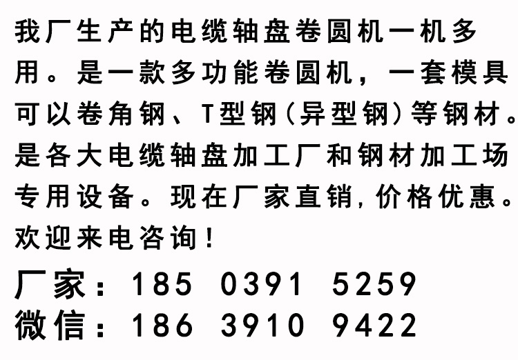 卷圆机根据构件在弯曲中的形状要求,采用了通过卷圆机和一定的工件和模具将板或钢弯曲成一定形状的。 修圆机是直线下降型轮廓弯曲机。 机器的两个侧辊是主驱动辊,或者三个工作辊是主驱动辊。 上辊固定在适当的位置,下辊将工件向上,以防止横截面变形。 侧辊与上辊相对应,用于线性运动,液压控制,位移数字显示,这有利于控制型材成型。 两侧都有CNC惰轮和变形校正装置,有利于确保绕组和不对称截面轮廓的成型。 表面工件。 台式异型钢弯弧机 角钢成型机工作原理 价格 厂家.