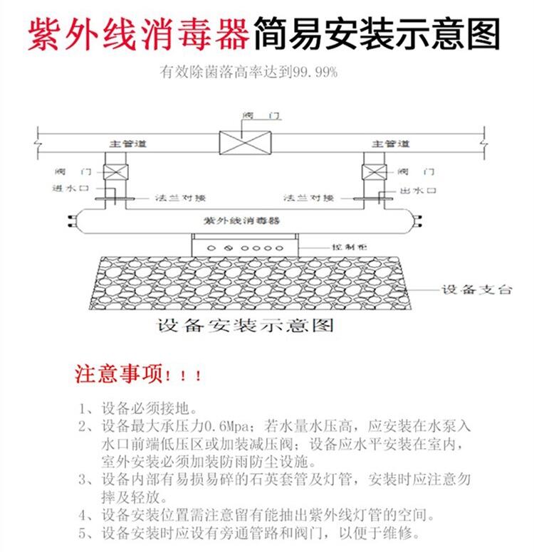 紫外线消毒器水处理设备管道式过流式污水净水杀菌灯灭菌仪可定制
