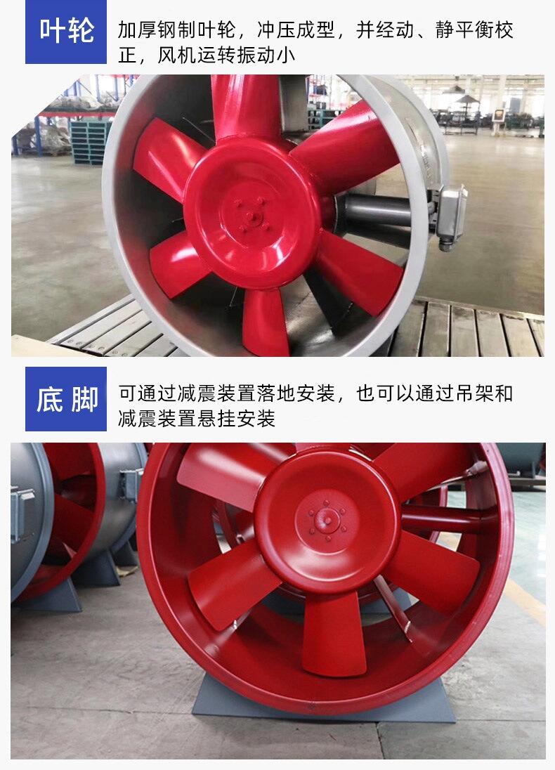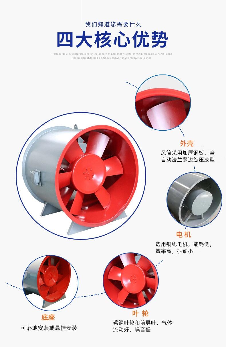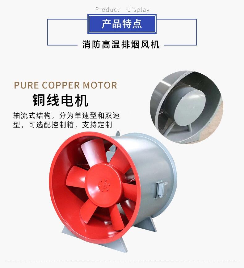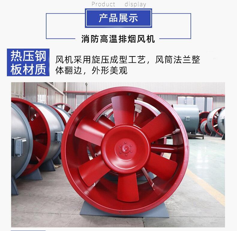 2、消防排烟风机具有优良的耐高温性能。在消防排烟风机制造行业,有严格的质量保证体系,规定消防排烟风机必 须能够在300℃的高温环境下连续工作60分钟以上。