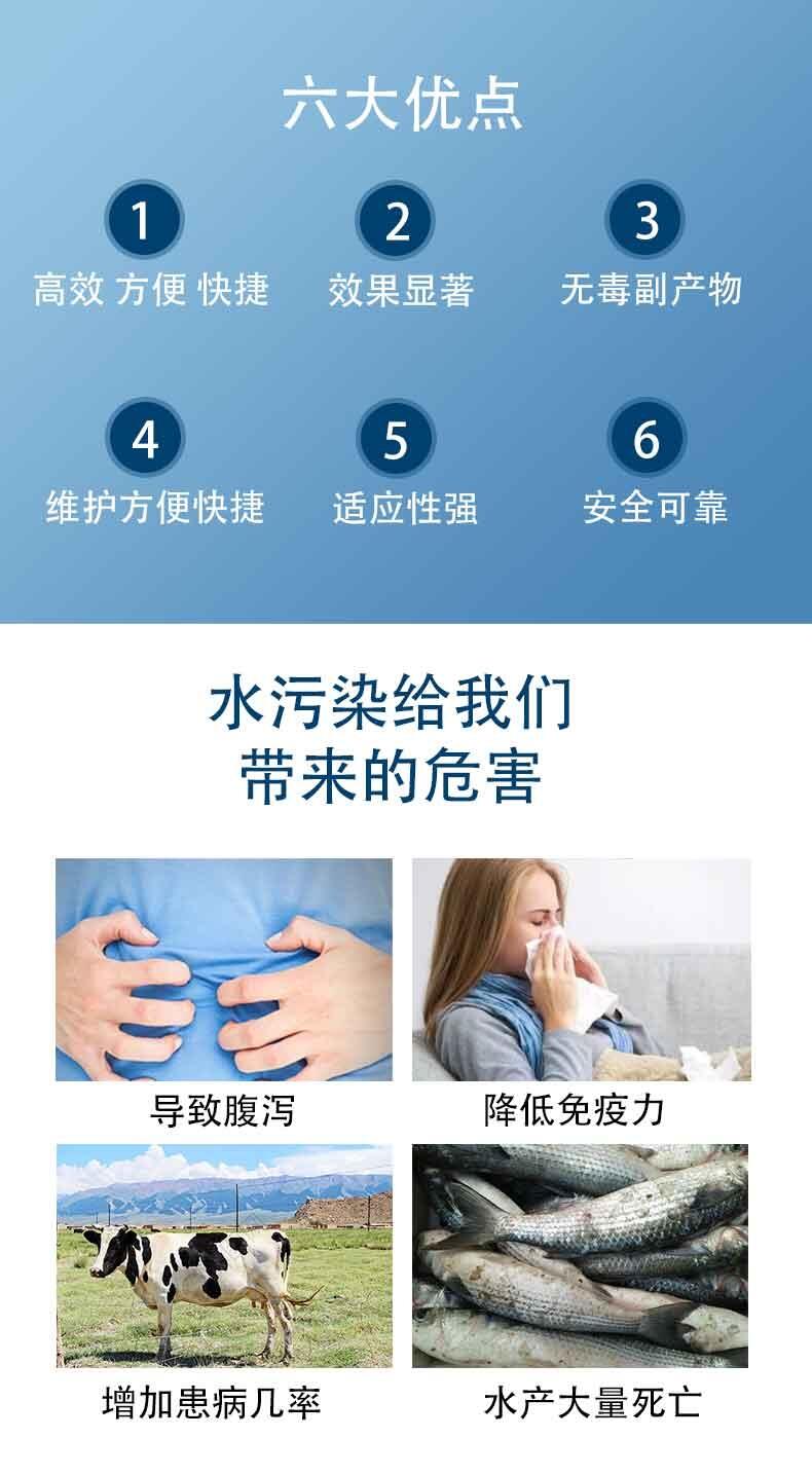 羟基自由基直接破坏细胞膜,快捷的摧毁细胞组织,将水中的细菌、病毒、微生物、有机物等迅速分解成CO2和H2O,使微生物细胞失去复活、繁殖的能力,从而达到分解水中细菌、病毒、微生物、有机物等的目的。