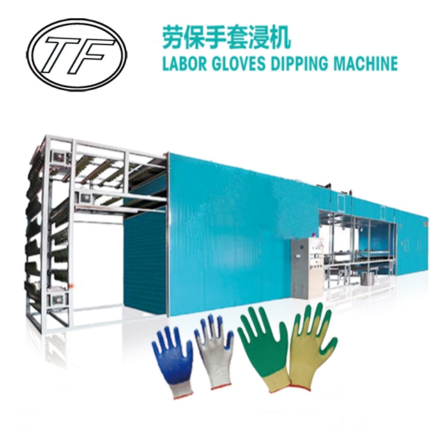 1) 劳保浸胶手套生产线又叫手套浸胶机,是一种制作乳胶手套、浸胶手套的设备,根据用途,手套浸胶机有分半浸胶手套机和全浸胶手套机。