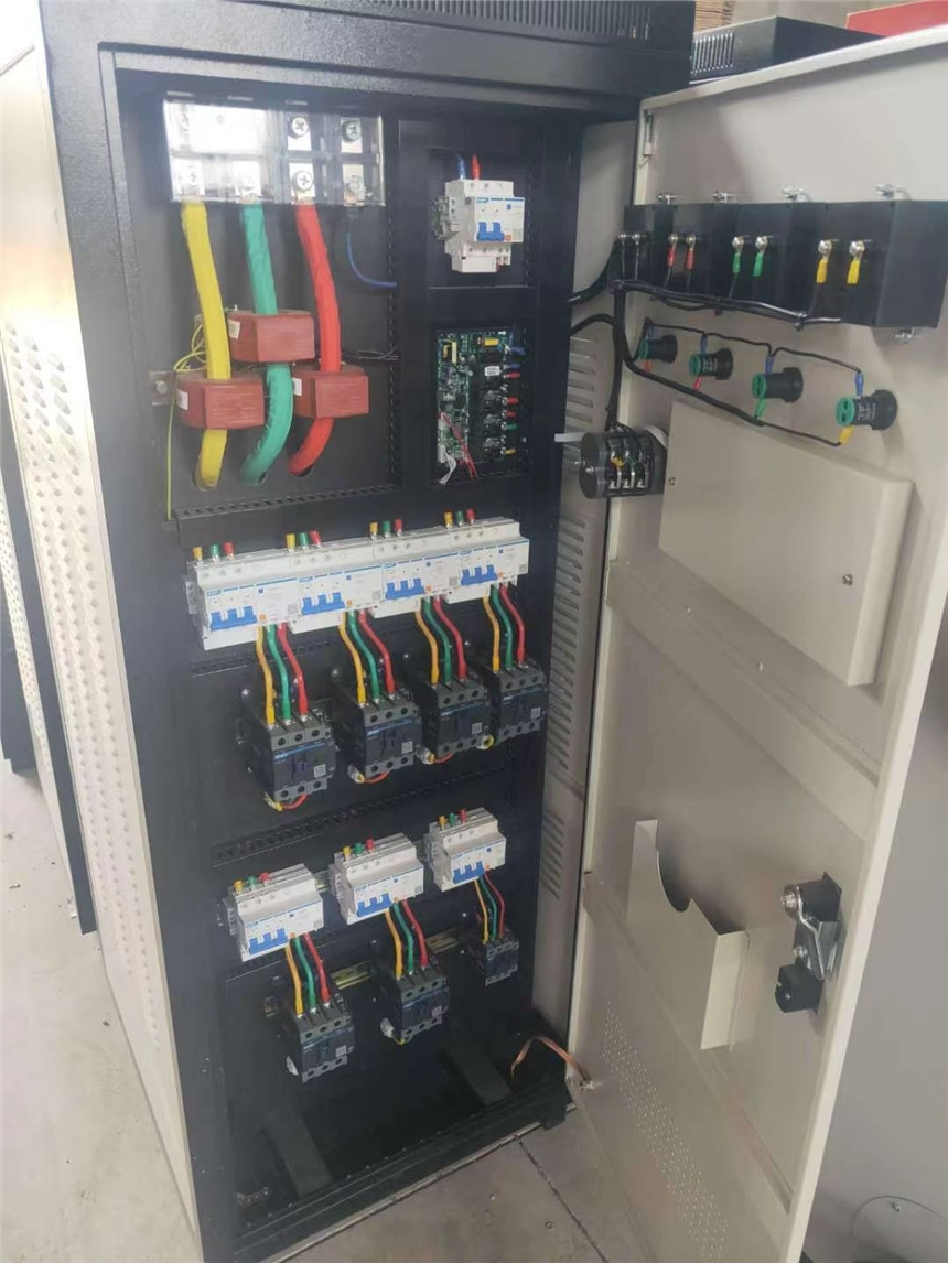 4、采用交流接触器进行隔离电路控制,防止电加热启动对电控板的干扰,且每个交流接触器的进线端都设有带漏电保护的空开,可以手动选择是否投入该交流接触器所带负载的功率,实现对功率的自主调节。