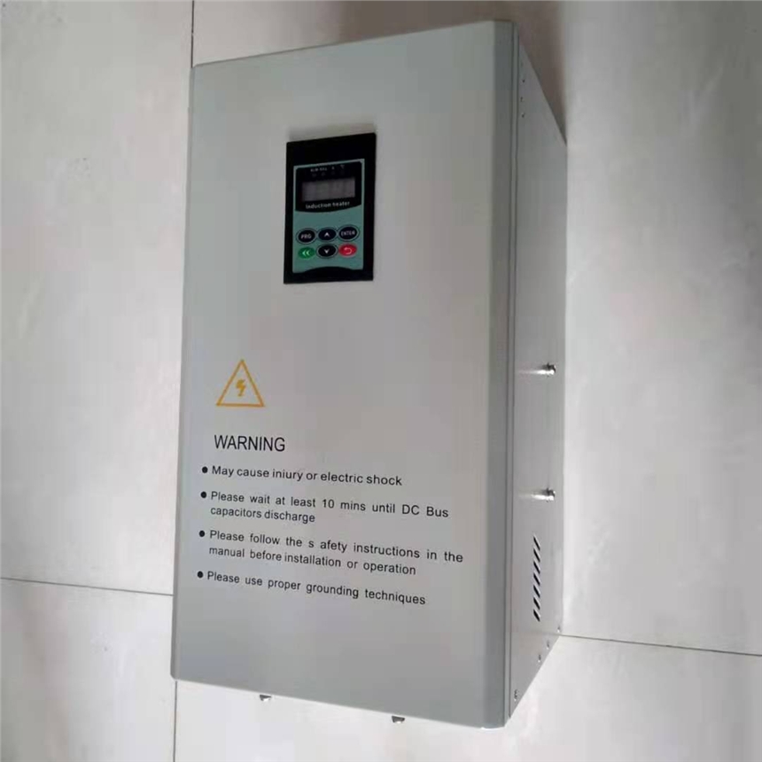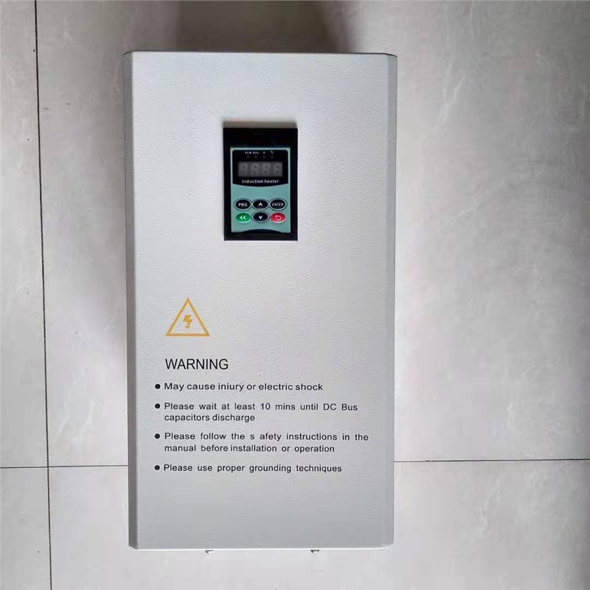 采用全桥电路,通过IGBT模块、谐振电容、电感滤波、三相桥堆、直流风机、磁隔离电路、DPS系统等,将常规的50HZ整流变频成20KZH,形成磁场,让导磁材料发热,可用来加热铁、不锈钢等导磁材料。