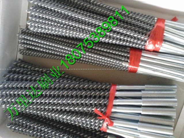 绞线刷扭线刷:单位:mm; 1、钢丝铜丝绞线刷材料:铜丝、不锈钢丝、碳钢丝(丝径ф0.06—ф1.0)、铁线; 可制作双股线、三股线、四股线绞线刷,最小外径可做到4mm;机械零件深孔、相关孔、同心大小孔相连处在加工过程中都会产生毛刺,去除毛刺可以提高零件品质,是机械加工工艺重要一环。利用通道刷处理小孔毛刺是必要,经济,高效率的方法。 2、洗瓶刷材料:尼龙丝(丝径ф0.06—ф1.0)、猪鬃、棕丝、剑麻、不锈钢线;可制作双股丝、三股线、四股线绞线刷,最小外径可做到1.2mm。洗瓶刷用于清除试管瓶、塑料瓶、玻璃瓶、刷毛有尼龙、猪鬃等材料。可按瓶径大小制作毛刷。 管道刷,英文为 tube brush ,又叫试管刷,管子刷,清孔刷,扭丝刷,内孔刷,内管刷,清槽刷等,是一种应用非常广泛的产品,属于抛光清理除、除锈功能的范畴。主要是由铁丝(钢丝)作骨架,加以扭制.上面带有许多排列整齐,向外伸展的细刷丝构成。刷丝材料有尼龙丝,纤维毛,猪鬃,钢丝,铜丝,磨料丝等.管道刷一般使用在液压阀内控去毛刺、缸套活塞内控抛光、钢桶清洗、试管清洗、锅炉清除污垢、金属零件内孔去毛刺等 管道刷的适用范围.