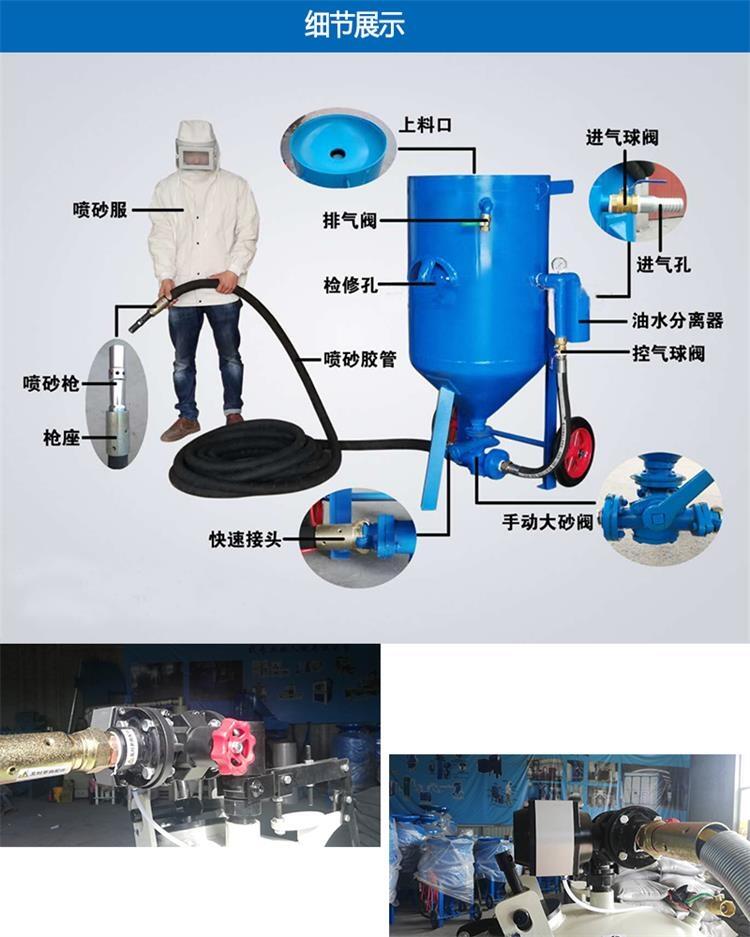 本机采用了直通型喷砂阀,彻底解决了磨料的堵塞,喷砂出口的速度可达200M/S