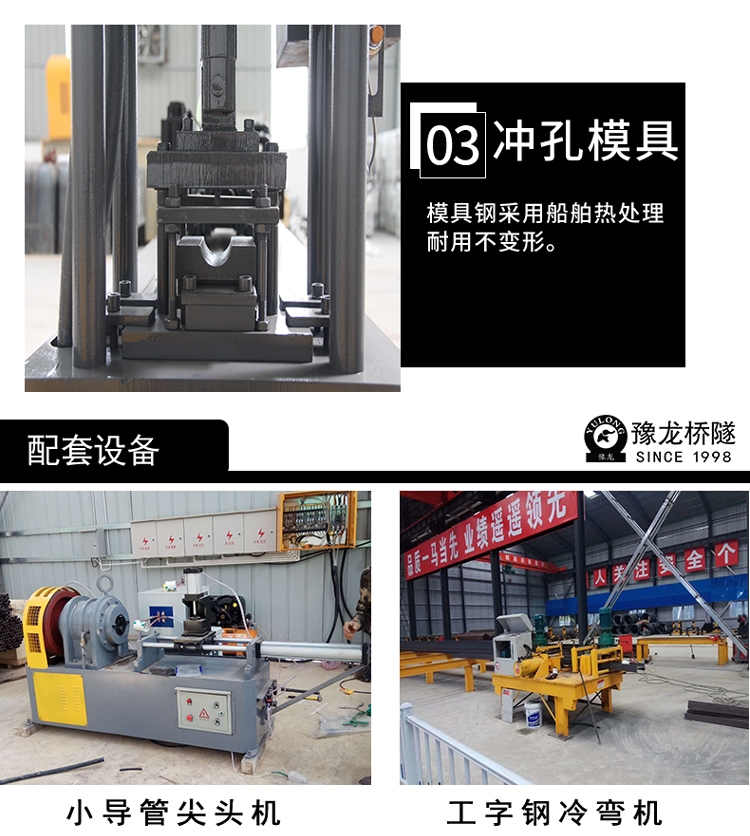 液压冲孔机 无缝钢管打孔机 小导管冲孔机图文介绍 施作超前小导管注浆支护时应注意的问题Ⅰ在施工中,钻机需隔开一定距离,否则因向岩体注水太多,可能围岩塌滑。在钻进中,重要的是保证钻杆及钻头水孔的畅通,为此,需要注意水从钻孔中的情况,如发现水孔有堵塞的迹象,则将钻杆后撤50cm左右,经反复扫孔使水孔畅通,然后慢慢进尺,直至达到设计深度。
