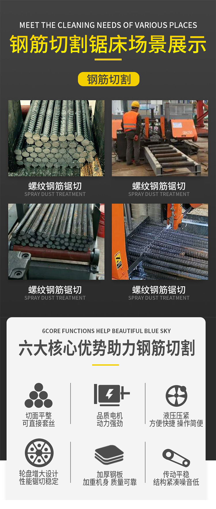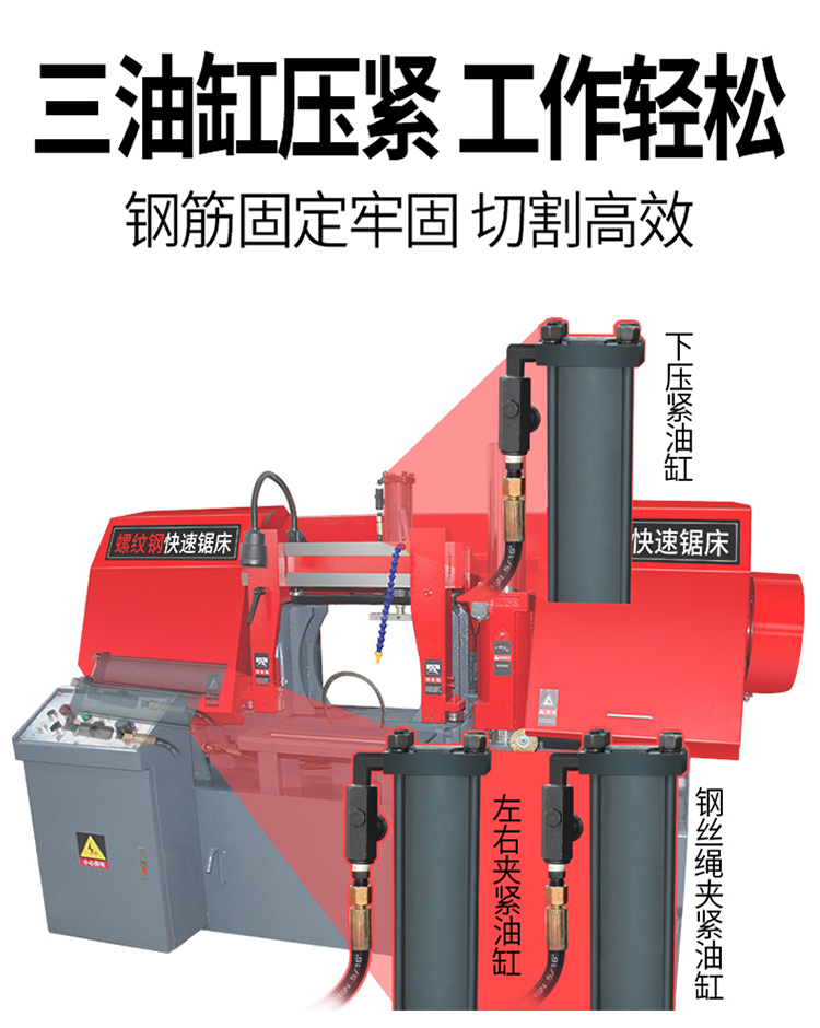 数控钢筋锯切套丝打磨生产线介绍: 全自动数控钢筋锯切套丝镦粗打磨生产线:本设备是我公司针对国内螺纹钢筋的套丝连接,整体结合技术,公司研 发的集电气、液压、气动为一体全自动化科技产品,具有水平。可自动完成钢筋直径12~50mm,强度HRB335、 HRB400、HRB500的锯切套丝,具有切削、高缩径滚丝、节能省料、操作简单等特点。 金属切割带锯床 数控液压切整捆钢筋带锯床 半自动工字钢切割锯床,金属切割带锯床 数控液压切整捆钢筋带锯床 半自动工字钢切割锯床。