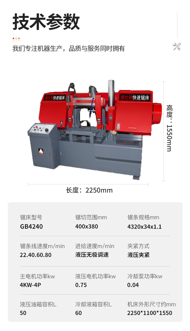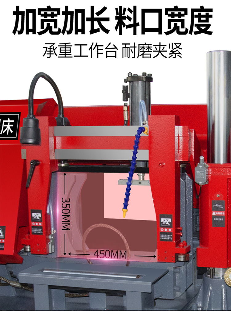 圆料及各种型材的切割,亦可用于切割有色金属及非金属材料。由于带锯 切口窄,切削效率高,因此能耗小,材料浪费少。是一种具有显著节能,节材效果的切割设备。双立柱带锯床主传动采用蜗 轮箱变速,进给采用液压传动,工件采用手动和液压混合式,具有结构紧凑,操作维修方便等特点。 金属切割带锯床 数控液压切整捆钢筋带锯床 半自动工字钢切割锯床