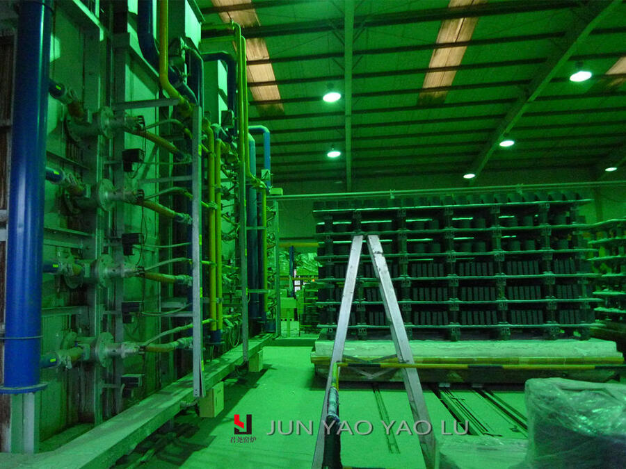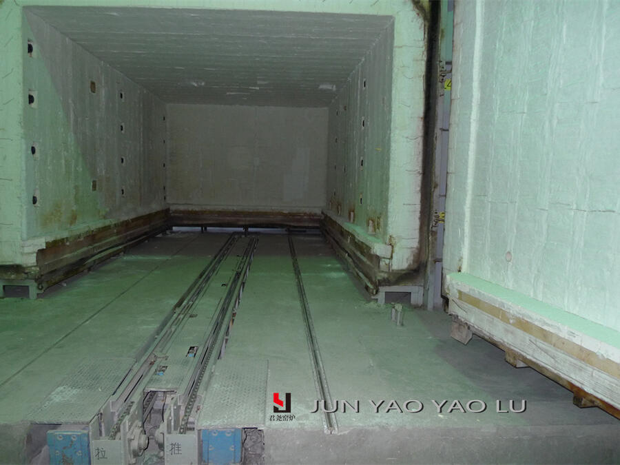 15:烟道结构: 窑车内烟道材质为莫来石轻质砖从两侧面墙排烟。