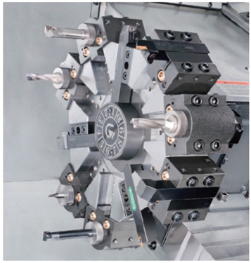 > 采用超高精度曲齿离合器精密定位刀盘,确保任何切削情形下皆有充分刀塔刚性。