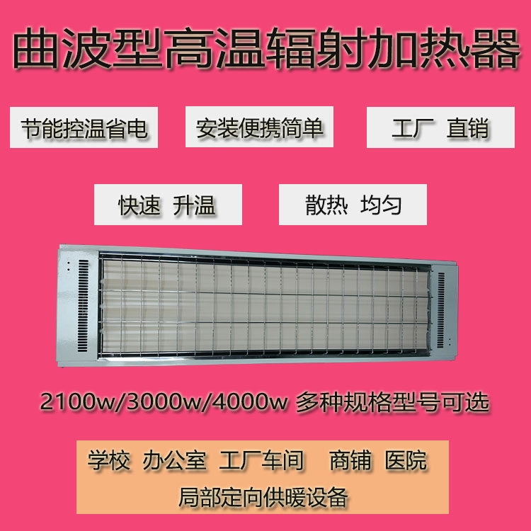 远红外高温辐射电热幕?辐射板?采用的技术,以220V或380V交流电为能源,以加热整体空间环境。电热幕是由碳陶技术加工形成的加热元件作为发热元件、采用铝合金表面经等,隔热层和外壳等几部分组成,没有风机。