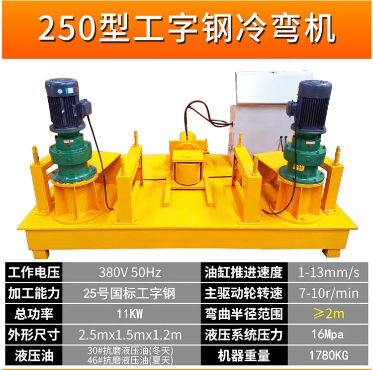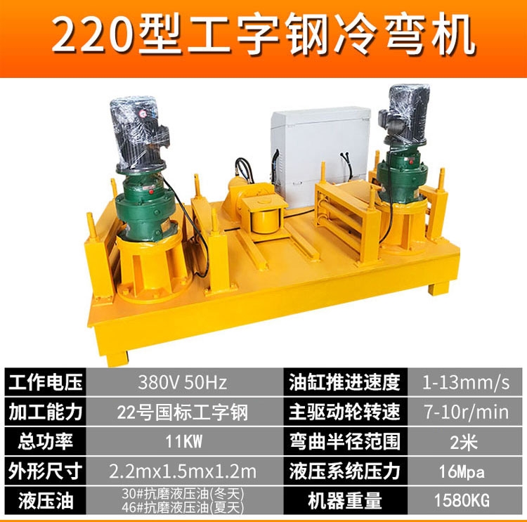 工字钢冷弯机厂家供应20号工字钢顶弯机 320型冷弯机, 主要用于工字钢、矿工钢、U型钢、C型钢、角钢、槽钢、道轨、方钢、钢管等型钢的拱形卷圆、变径、定角弯曲;主要应用于,地铁,水电站,地下洞室等圆管,槽钢弯曲。数显编码器编程,使液压准确,所弯型钢自动成型,效率高、操作方便;应用于、地铁、水电站、地下洞室等行业施工中,是钢拱架制造的设备。