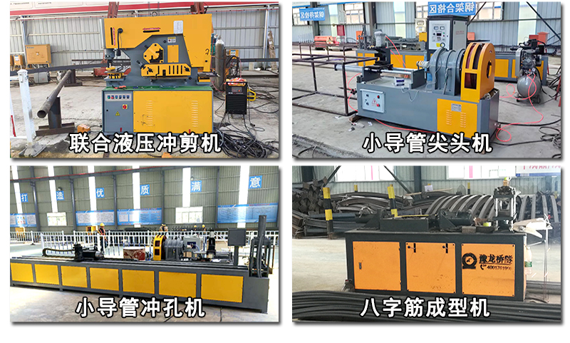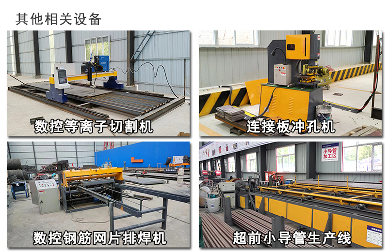 我厂生产的钢筋加工场设备有:、连接板冲孔机、小导管尖头机、小导管冲孔机、钢筋网片排焊机、联合液压冲剪一体机、龙门式等离子切割机等设备。