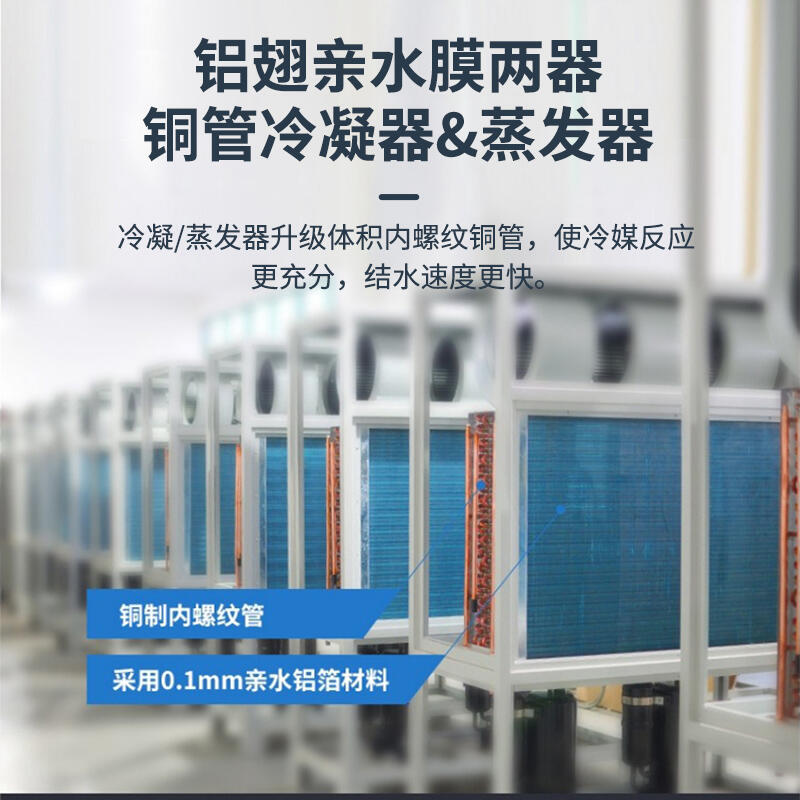 分体式风冷调温除湿机组是杭州特奥环保科技有限公司利用冷冻除湿调温原理进行设计生产的又一款节能高效除湿产品;与相同冷量的其他型式机组相比,由于其冷凝器采用特制高效传热管制作,因此结构紧凑,体积小,效率高;又由于其采用直接蒸发盘管,制冷效率进一步提高,所以它是一种高效的空调产品。本公司在除湿机组制造方面有着成熟的技术,完善的工艺和先进的检测设备,再加上精选的国际一流配件,保证了机组的稳定、高效运行。出厂以前,机组严格按国家规定的检测项目完成全部性能测试,合格以后准予出厂。
