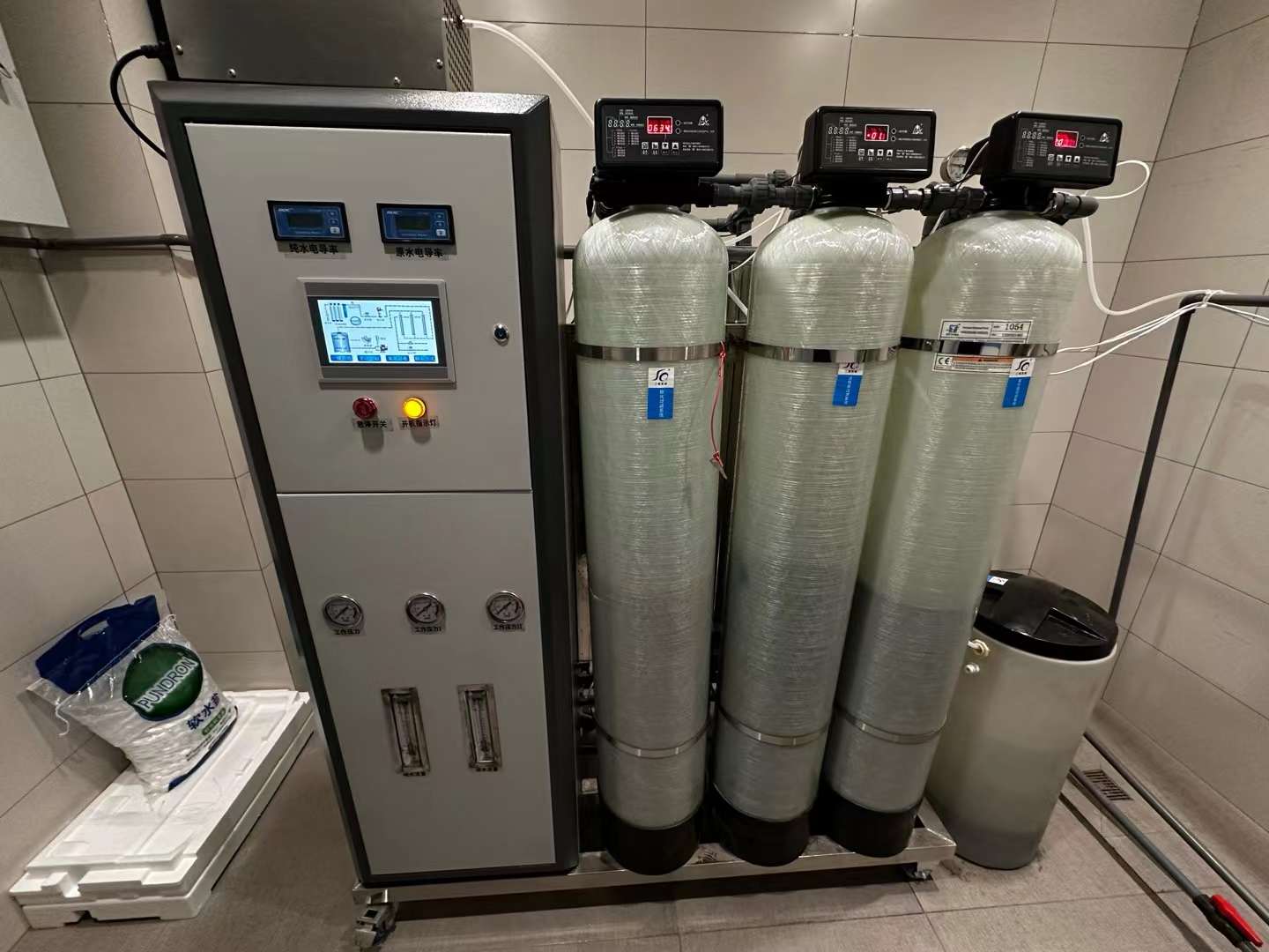 主要指标为电导率要求<15us/cm,菌落要求为<10CFU/100ML,生产纯化水有滤膜孔径应≤0。 2um,并定期更换。我司根据全国不同的水质情况使用针对性的渗透主机,北方进水水质较硬,一般可采用双级反渗透主机,南方源水水质较好则采用单级反渗透主机,进水主要为城市自来水。