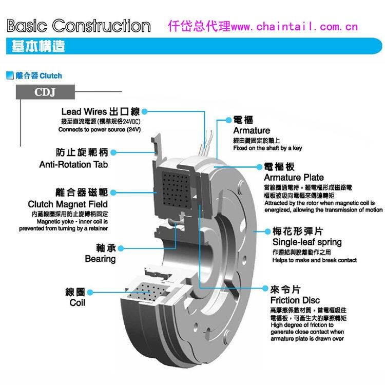 台湾仟岱生产电磁离合器CJ1010AC已经有40年历史,产品种类繁多,价格实惠,品质保证,供货稳定,中国大陆总代理商13710967244余先生,可提供产品选型及技术支持,欢迎来电咨询。