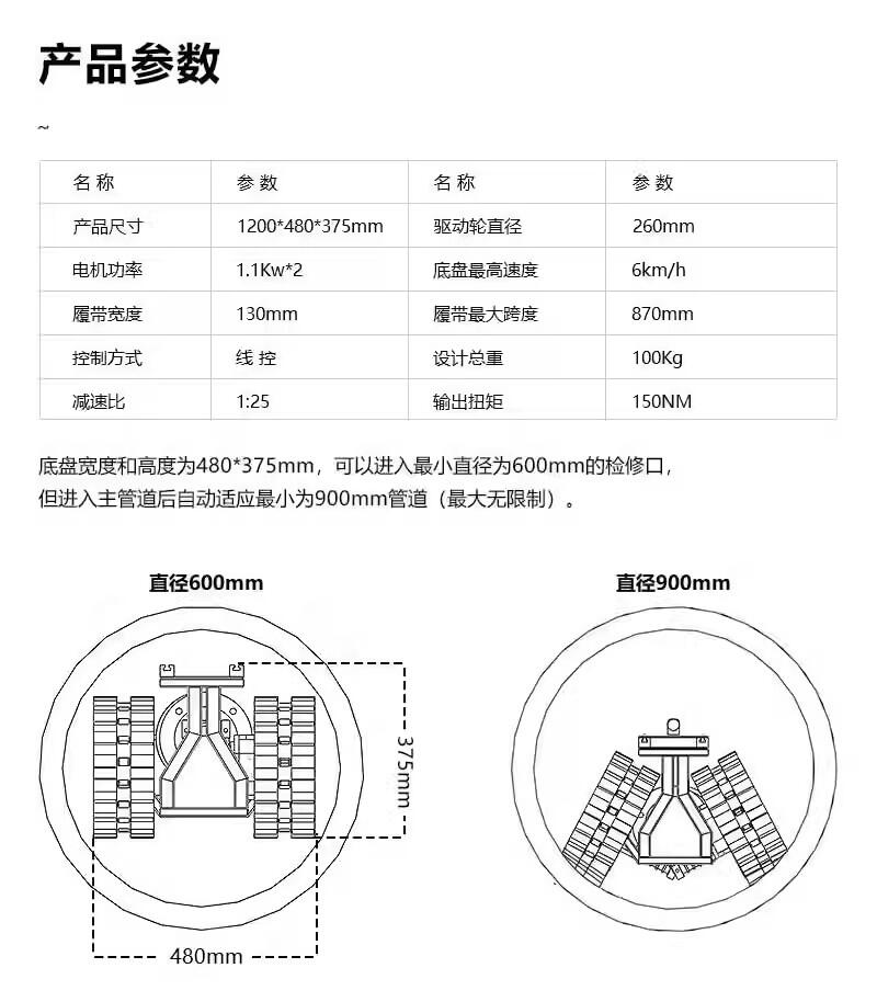 • 规格:管道底盘
