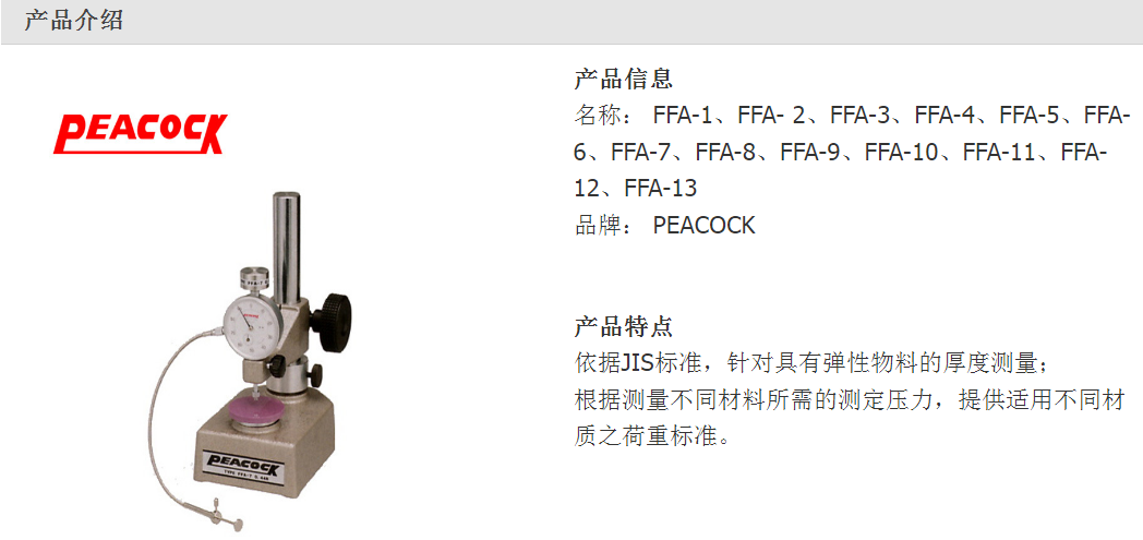 日本PEACOCK 孔雀弹性材料厚度测量 台式定压荷重厚度计 FFA-1
