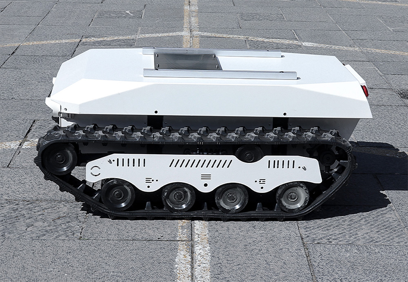 多功能自走式橡胶履带电动机器人智能移动全地形底盘作为多功能平台,可搭载摄像头、水枪等多种设备,广泛应用于巡检、协同运输、市政、消防等行业. 并且这款履带机器人平台可以实现300kg的负载,支持二次开发。