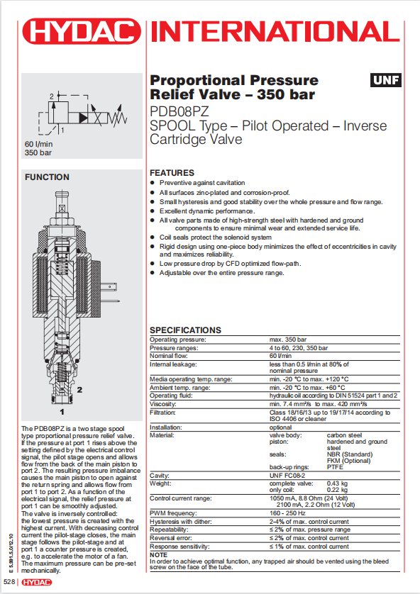 成都牧赫液压技术有限公司供应贺德克HYDAC比例溢流阀PDB08PZ-08-C-N-140V140-24PG-8.8