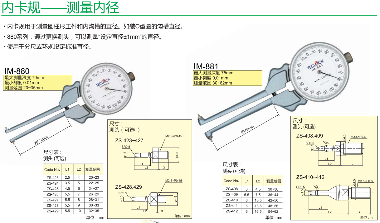 日本TECLOCK得乐 内径测量内沟槽测量卡规IM-882内径测量仪