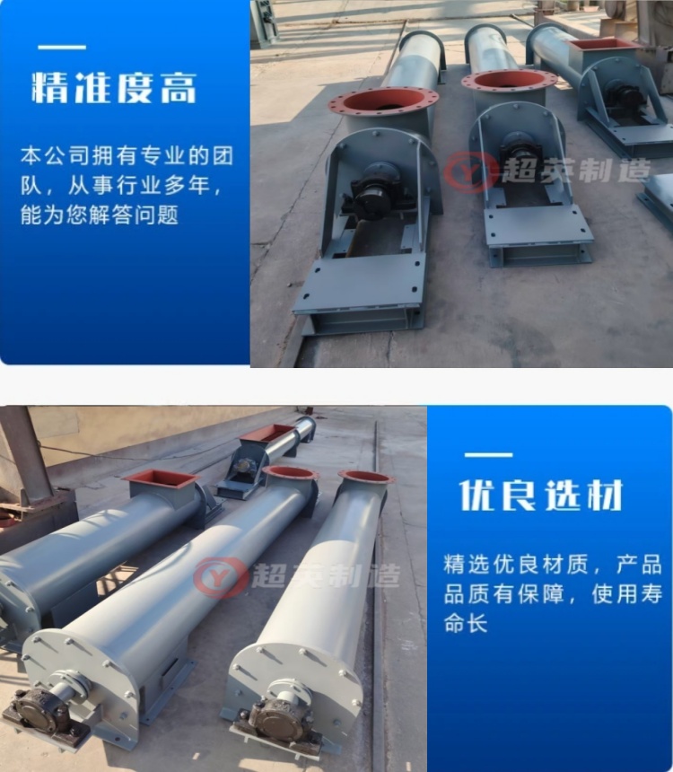 1.高输送: 采用了新型的悬挂式中间吊轴承架,增大了物料运送空间,减少了物流阻力,加上小直径,高转速,变螺距等设计,确保顺畅,快速均匀送料.