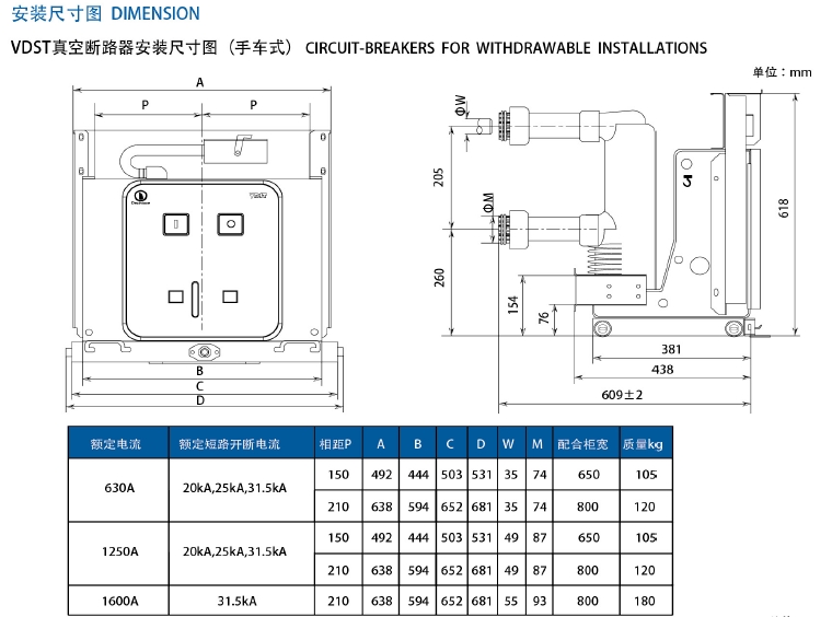 6、灵活的安装方式。VDST真空断路器具有固定式和手车式两种安装方式,既可以直接安装于各类固定式开关柜,也可装配手车后安装于 移动式开关柜。