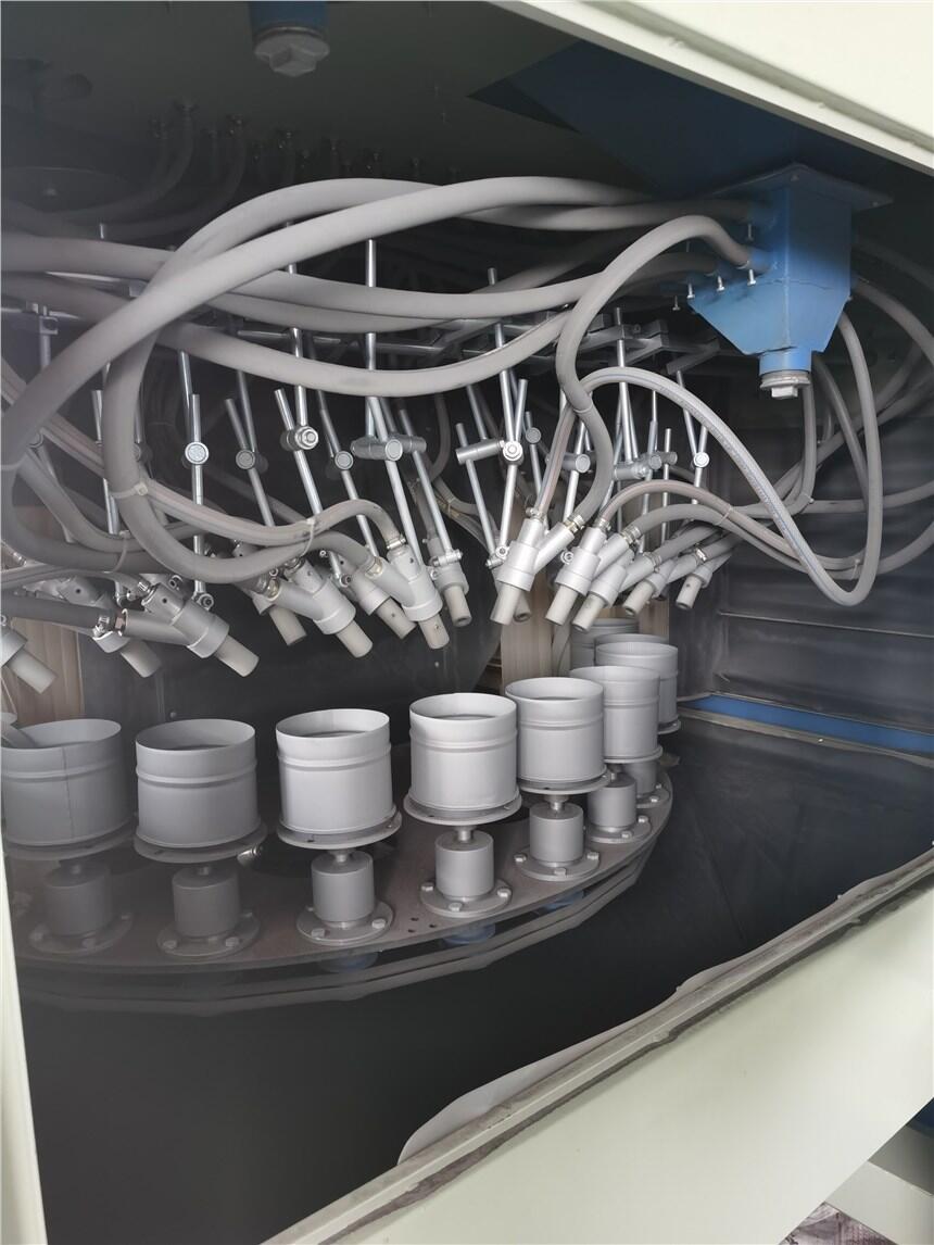 1、将工件装夹于小转盘夹具上,由带动小装盘移动至喷砂加工工位时,工件由小转盘带动做缓慢旋转,喷做两组上下移动对加工工件表面进行喷砂加工,加工完毕,气动门自动打开,待取放工件位装夹完毕后,按运行启动按钮,转动,循环重复运行即可。工件进出口采用气动升降门,工件进出时能够自动开启关闭。