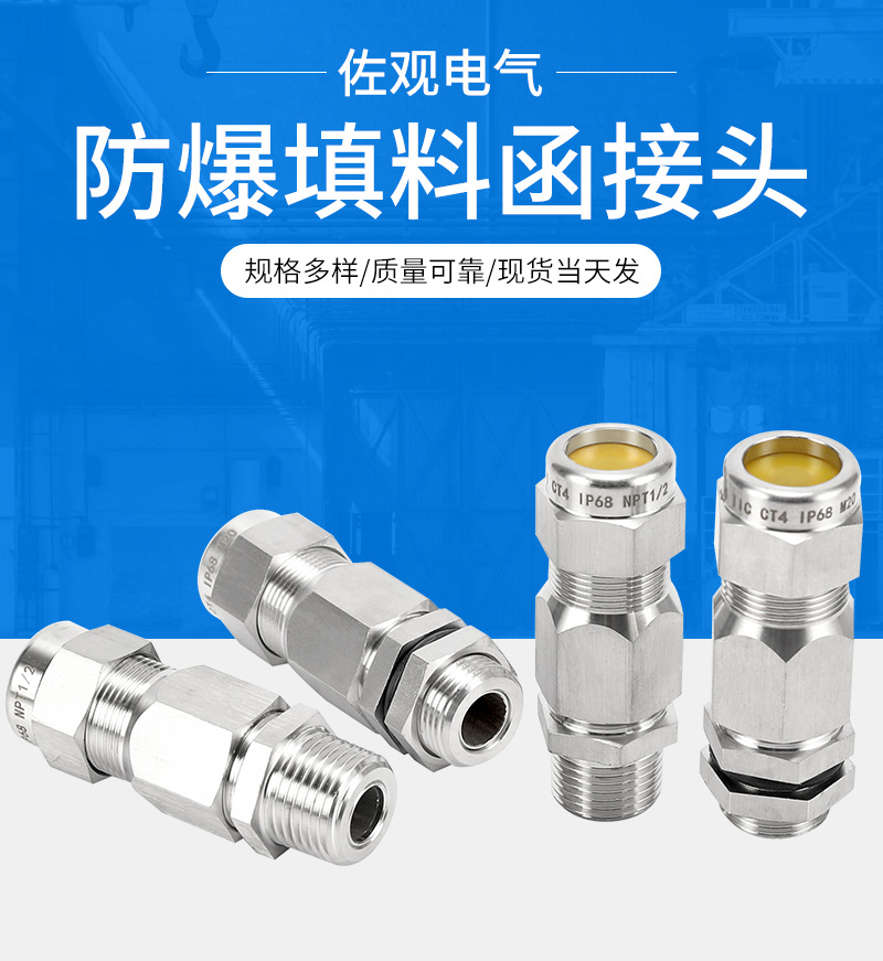 佐观 防爆填料函 304不锈钢材质 ExdIIC隔爆型 防腐防水 NPT1/2 M20*1.5 防爆等级 | ExdIIC Gb/Ex tD A21 | ||