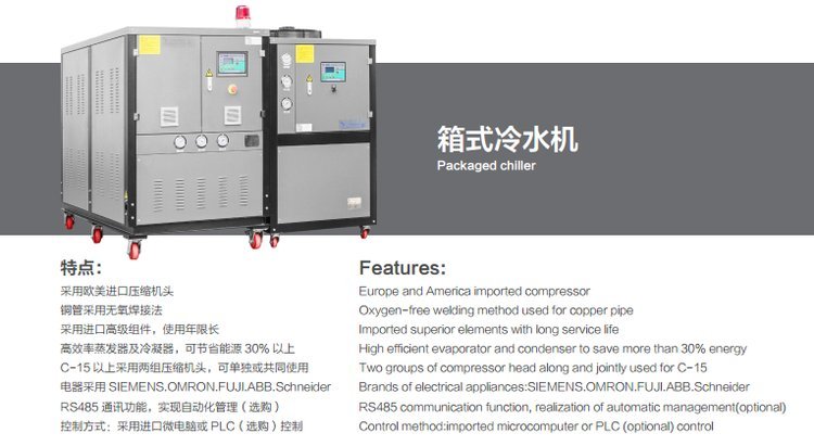 所以当车间温度较高时,风冷式冷水机除本身会受到影响外(冷凝器温度过高会直接导致工业冷水机高压报警,制冷能力下降),对车间温度也会有直接影响。水冷式冷水机的优点显而易见。水冷式工业冷水机需要冷却水塔循环冷却水来降温,因此要使用水冷冷水机需要安装冷却水塔、冷却水循环水泵、管道,较为繁琐。相比较风冷式工业冷水机,可方便移动相形见绌。但大多数情况下的工厂都是已经有配备冷却水循环系统。