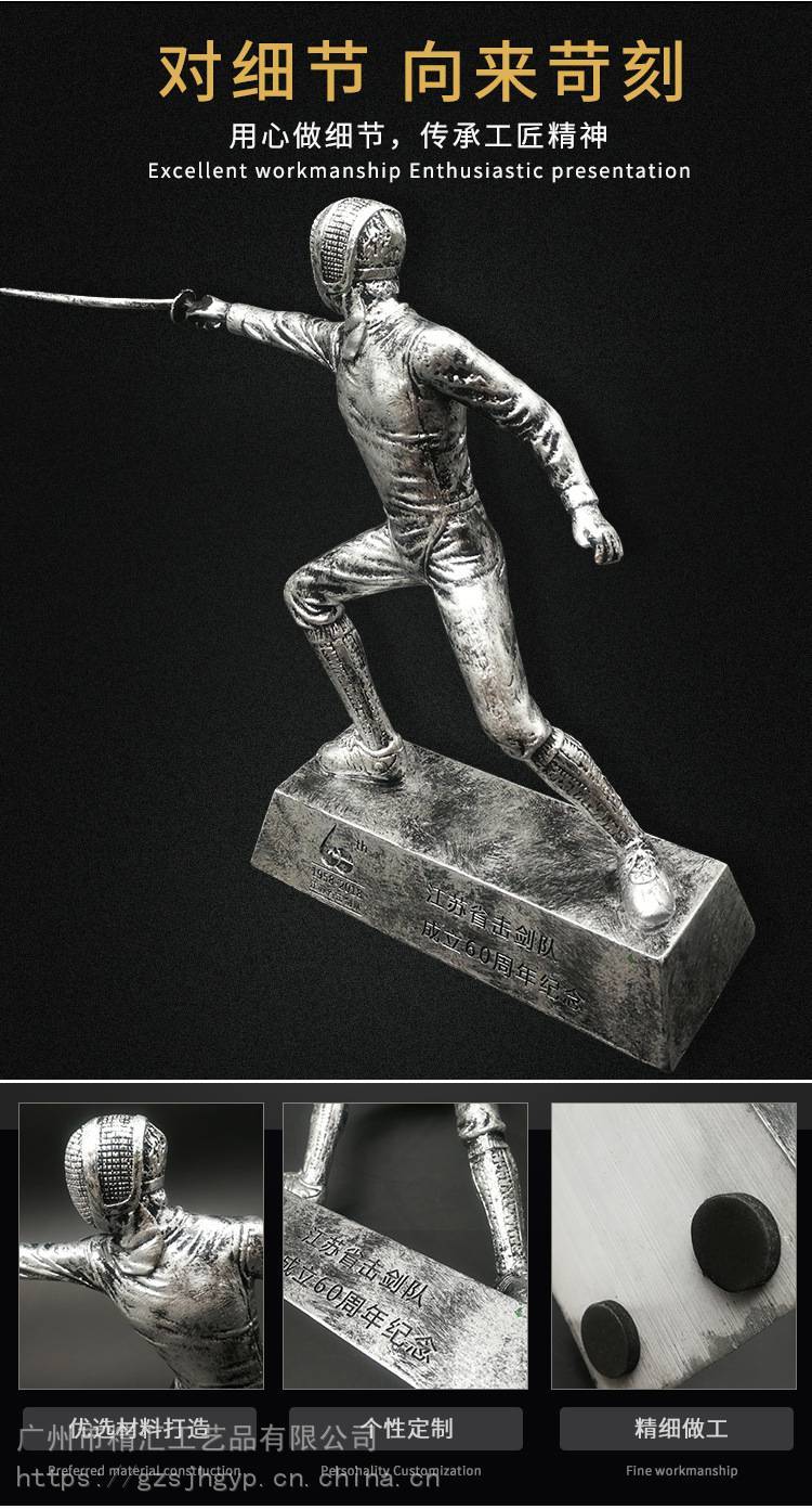 上海奖杯定制定做创意树脂工艺品击剑运动纪念品树脂金属奖杯制作