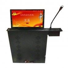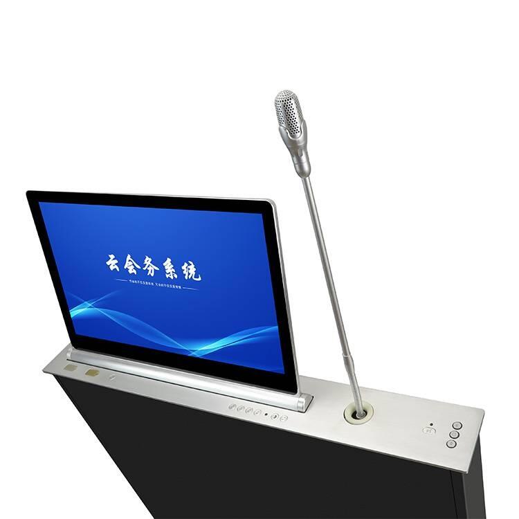 产品本身内置LED高清显示屏,超薄机身和铝合金精拉丝氧化面板结构,齿轮齿条配合双直线导轨传动方式,显示屏采用全铝合金外壳,外观无螺丝,产品使用***,美观大方。外置VGA、DVI、HDMI等多重信号接口和RS232/485控制接口,产品在启动时,液晶显示屏升降器从箱体内部升出桌面并自动为显示屏供电,产品设有智能仰角0-15°可调节角度功能,满足各个人群的显示屏仰角使用需要。当产品使用完成需要关闭时,显示屏自动返回升降隐藏于箱体内部并自动断开显示屏电源,起到保护显示屏并节约用电的作用。产品具有防盗、防尘、和保持桌面平整美观,会议场所整齐有序等功能。显示器尺寸大小有四中规格可选(15.6寸/17.3寸/18.5寸/21.5寸)本系列产品可按客户要求定制