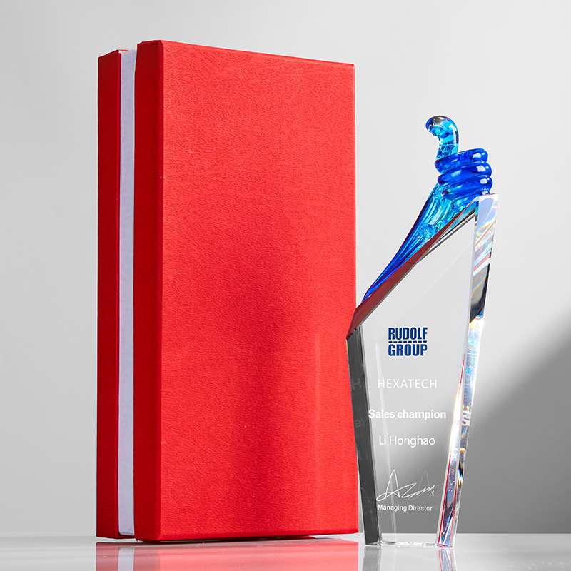 3:水晶:她晶莹剔透,闪闪发光,手感细腻,冰雪透明,还可以在上面刻各种荣誉、获奖诗词、奖项人名、LOGO、纹图案等。用的材料水晶---像冰雪一样的干净的特点赢得了很多人的好评,用它来做颁奖礼品给优秀的人。