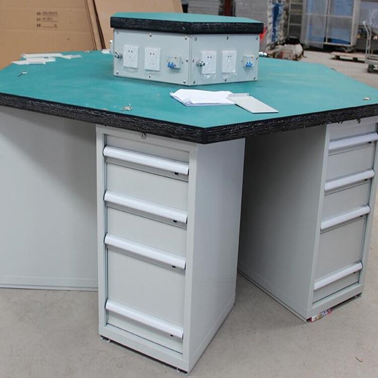 1.工作台使用于学校、车间流水线、钳工操作台、电子厂生产,等多种地方时使用.2.可以配带抽屉,柜子,灯架、挂板架、钳工台等设备配合生产。3.桌面有复合面、防静电面、榉木面、不锈钢面、钢包面等多种可供选择,根据需要的不同搭配不同的桌面。4.在抽屉上可以加配可以移动的分隔板,根据存放工具的大小来调整空间。5.工作台配带的工具柜可以选择是抽屉的、带柜子的,或是两者都有的。6.桌面承重1000Kg,可以根据不同的需求来调整材料,从而保证了承重.