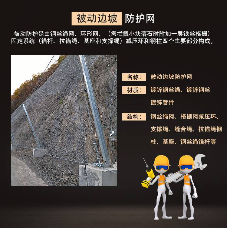 建泰被动防山体滑坡网PPS300型柔性防护网包安装