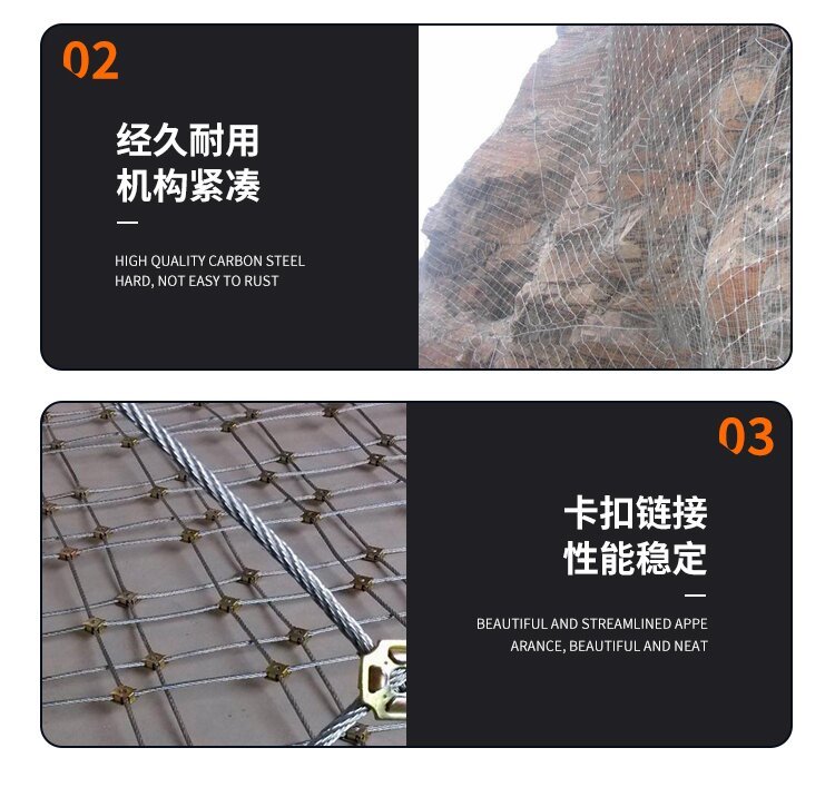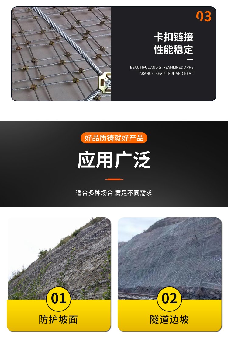 主动防护网用网丝覆盖边坡起到防护作用防止岩石坠落