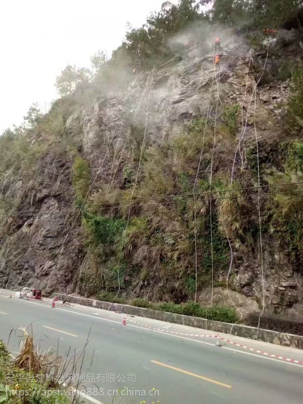 护坡网? ? ? 实体厂家 ? ? ? ? ? 被动防护网是由钢丝绳网、高强度铁丝格栅网、锚杆、工字钢柱、上下拉锚绳、消能环、底座及上下支撑绳等部件构成、系统由钢柱和钢绳网联结组合构成一个整体、对所防护的区域形成坡面防护、从而阻止崩塌岩石的下坠、起到边坡防护的作用。