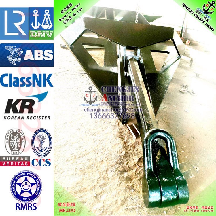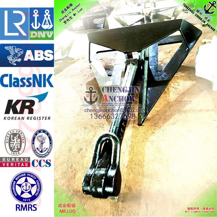 滕州成金船锚 生产斯贝克锚,霍尔锚,海-军锚,日本无杆锚,CJD-14 德尔塔大抓力锚(三角锚),CJT-20 (TW波尔)大抓力锚,CJ-17大抓力锚(MK5海工锚),丹福尔锚,我公司可提供ABS, BV, CCS, DNV, NK, GL, LR, RMRS, KR, 等普通锚船检证及大爪力锚船检证,欢迎订购!!