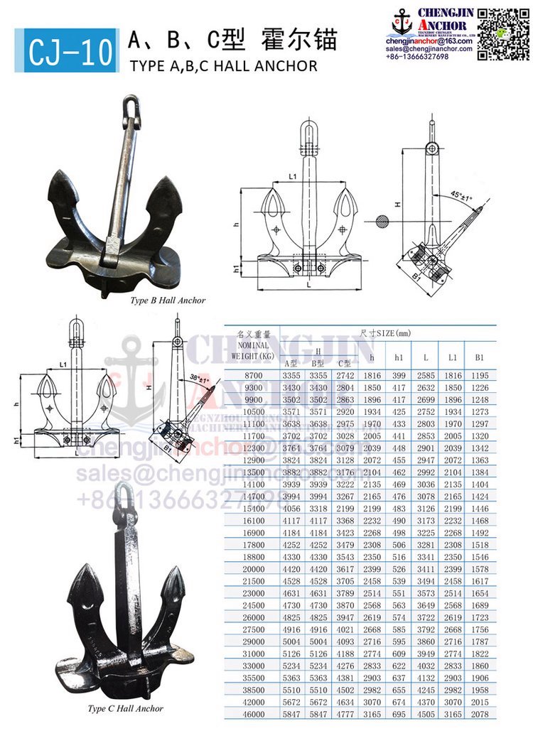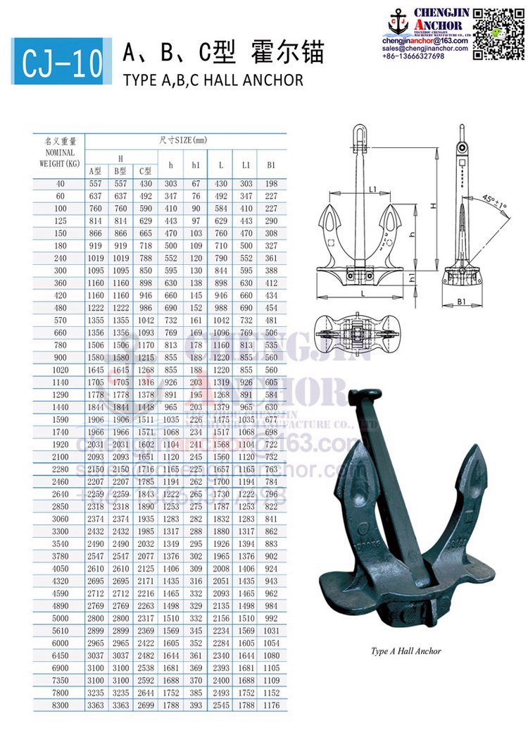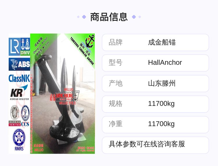 成金船锚 霍尔锚11700kg 船用艏锚 带NK/CCS船检 品牌 | 成金船锚 | ||
