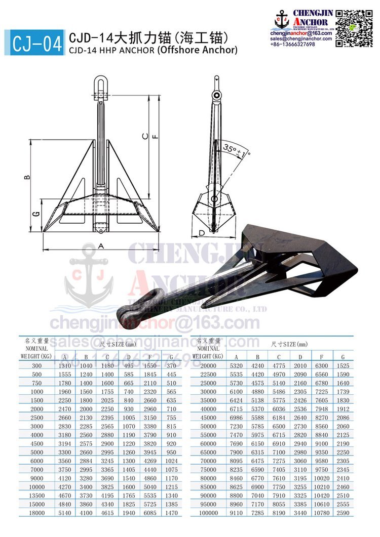 CJD-14大抓力锚(德尔塔锚)300公斤- 100000公斤