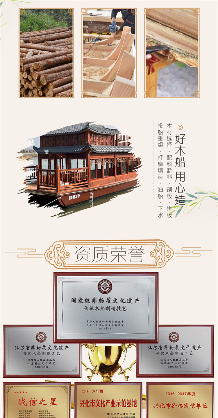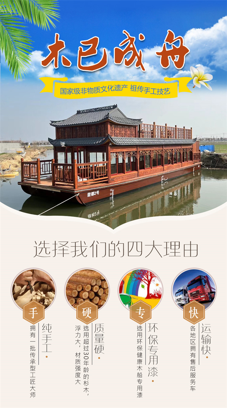 画舫船电动仿古大型观光旅游景区游览接待房屋餐饮船定制